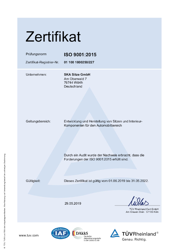 Durch einen kontinuierlichen Verbesserungsprozess wird die Qualität unserer Produkte permanent gesteigert. Unser hoher Qualitätsstandard mündet in der Anerkennung durch unsere Kunden. SKA ist unter anderem Partner der Deutschen Bahn AG als Q1 Lieferant und VanPartner von Mercedes Benz 2015-2018.